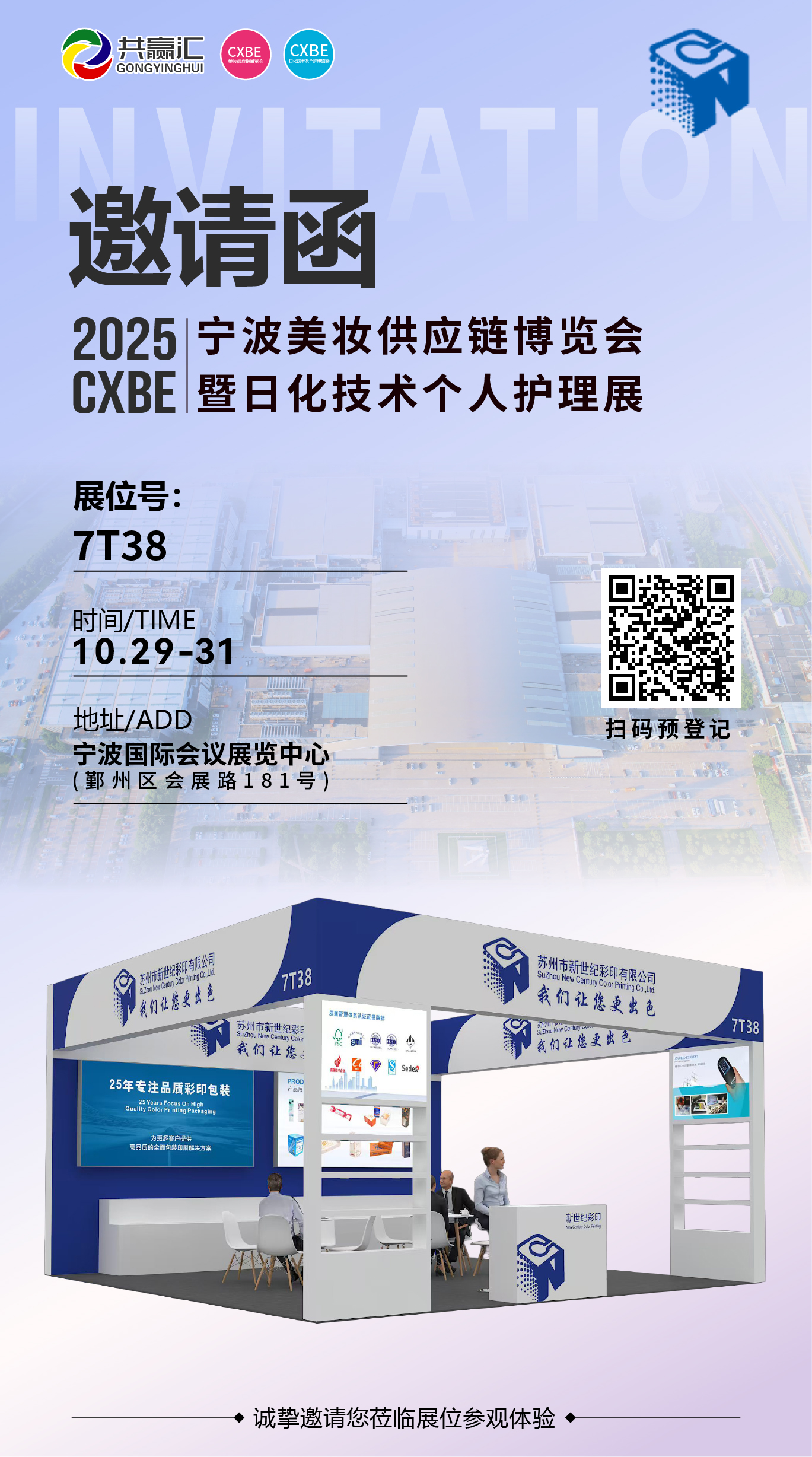 Suzhou New Century Color Printing Co., Ltd. tüm katılımcıları içtenlikle ziyaret etmeye davet ediyor Stand 7T38 ürün yelpazesini keşfetmek ve potansiyel işbirliklerini tartışmak için.
